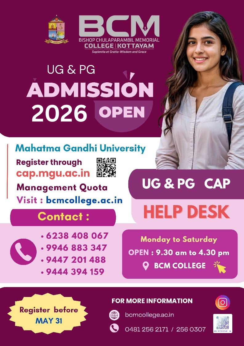 Bishop Chulaparambil Memorial College (BCM College), one of the first colleges for women in Kerala, situated at the heart of Kottayam, was founded in 1955 with the objective of empowering and liberating the women through education.