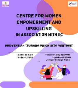 The Centre for Women Empowerment and Upskilling organized a two-day Skill Expo titled “Innoventia – Turning Vision into Venture” on 25th and 26th August 2025 as part of the Onam celebrations, showcasing students’ creativity, innovation, and entrepreneurial talents. The event featured various stalls, exhibits, and festive decorations, blending the spirit of Onam with academic and cultural excellence. Overall, Innoventia was a grand success, promoting teamwork, innovation, and cultural appreciation while leaving a lasting impact on the college community.