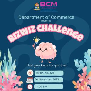 The Department of Commerce of BCM College, Kottayam conducted the BizWiz Challenge, a quiz competition designed to test and enhance students’ business knowledge and critical thinking skills. The event was held on 6 November 2025 at 1:00 PM in Room No. 225, with enthusiastic participation from students. The programme successfully created an engaging and intellectually stimulating atmosphere, encouraging learners to fuel their minds through healthy competition.